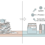 紙とデータの保管場所がバラバラだと、探し物の手間は2倍になります。紙の書類も、デジタルのフォルダ構成と連動させましょう。